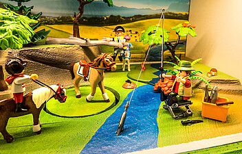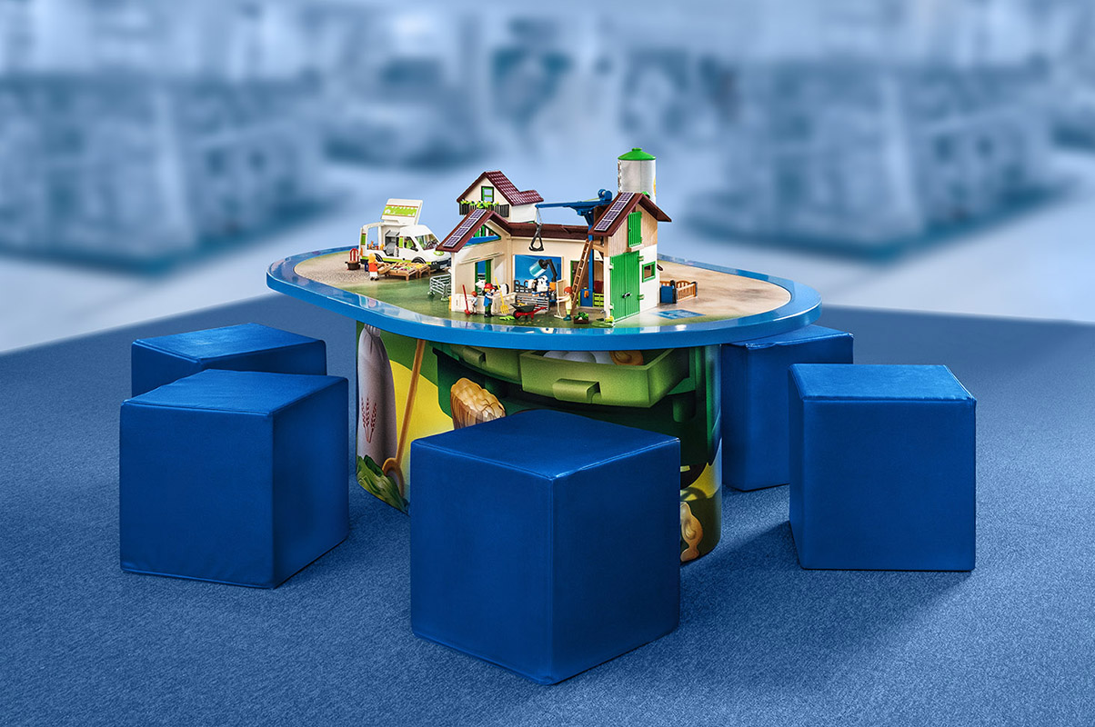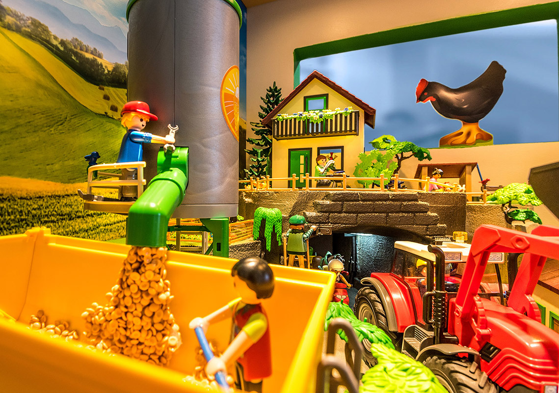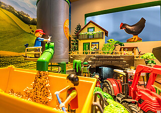 Und selbstverständlich ist auch Anfassen ausdrücklich erwünscht: Wer Lust bekommen hat, selbst einmal Traktor zu fahren oder die Bauernhoftiere zu versorgen, kann am Spieltisch gleich damit beginnen.