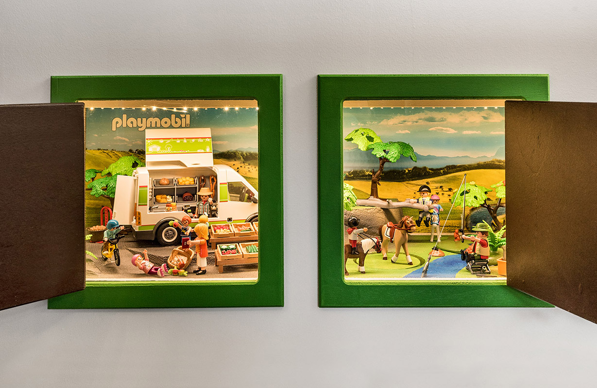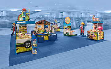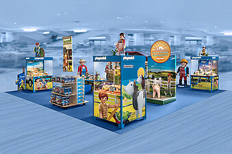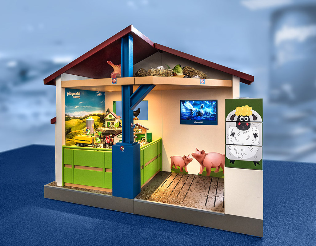 PLAYMOBIL-Figuren und -Tiere im Großformat laden die Besucher zum Staunen und zum Entdecken der fantasievoll dekorierten Szenerien ein. Ein besonderes Highlight ist das große Bauernhofgebäude mit Schauvitrine. Hier lassen sich alle Details der neuen Bauernhof-Spielwelt bewundern und es werden spannende PLAYMOBIL-Animationsfilme gezeigt. Zudem warten viele weitere PLAYMOBIL-Themen sowie lustige Puzzles und Spiele darauf, entdeckt zu werden. Am Fotopunkt lässt sich außerdem ein tierisches Erinnerungsfoto für zu Hause schießen.